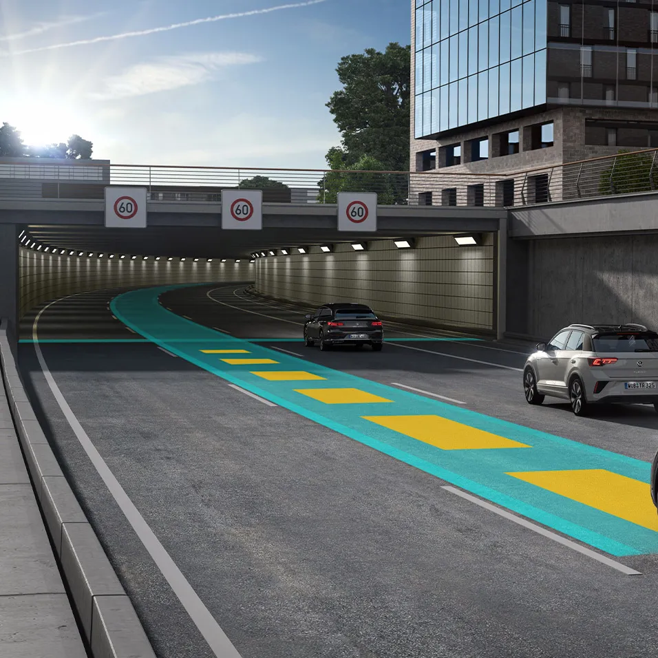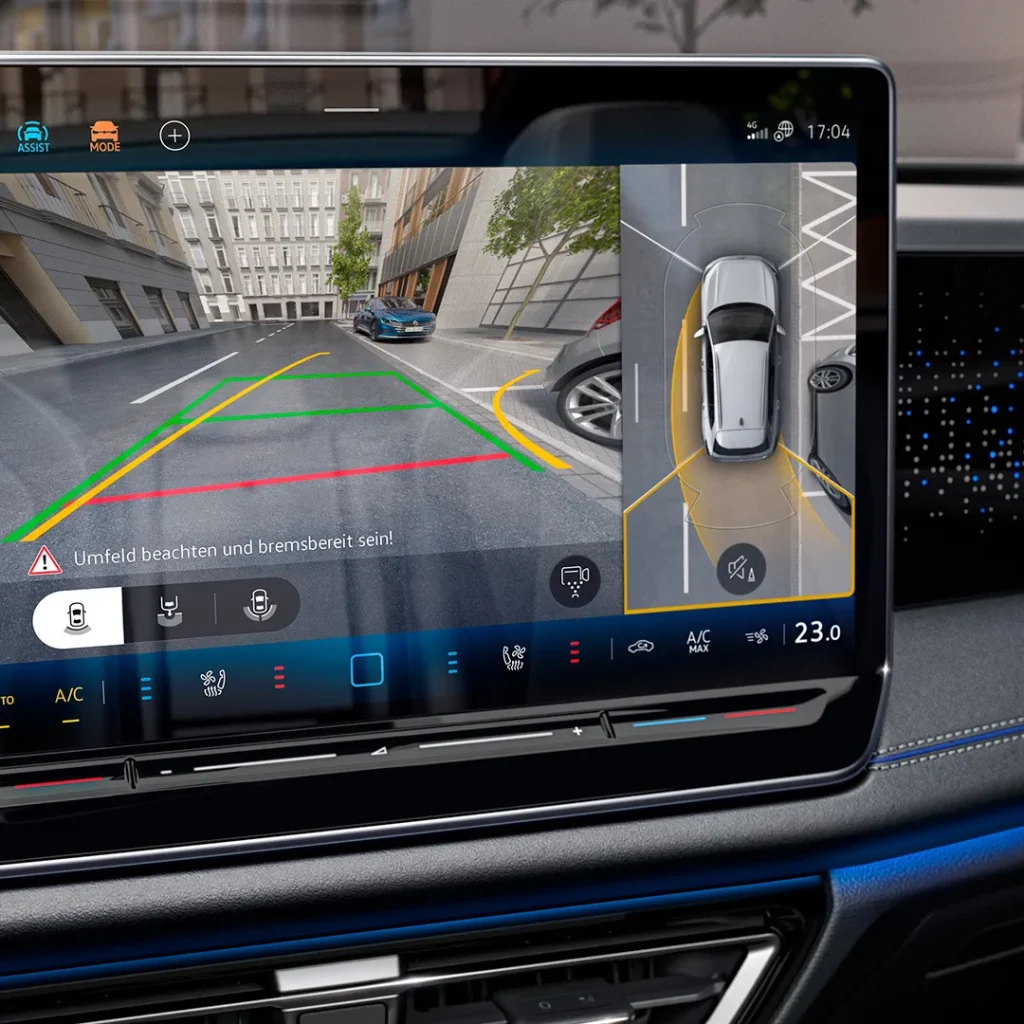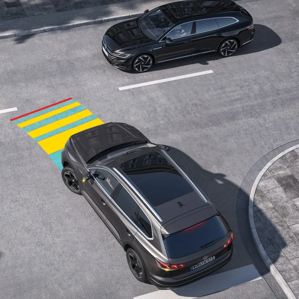 Detalhes sobre o Side Assist, assistente de manutenção de faixa, assistente de saída do estacionamento e advertência de saída