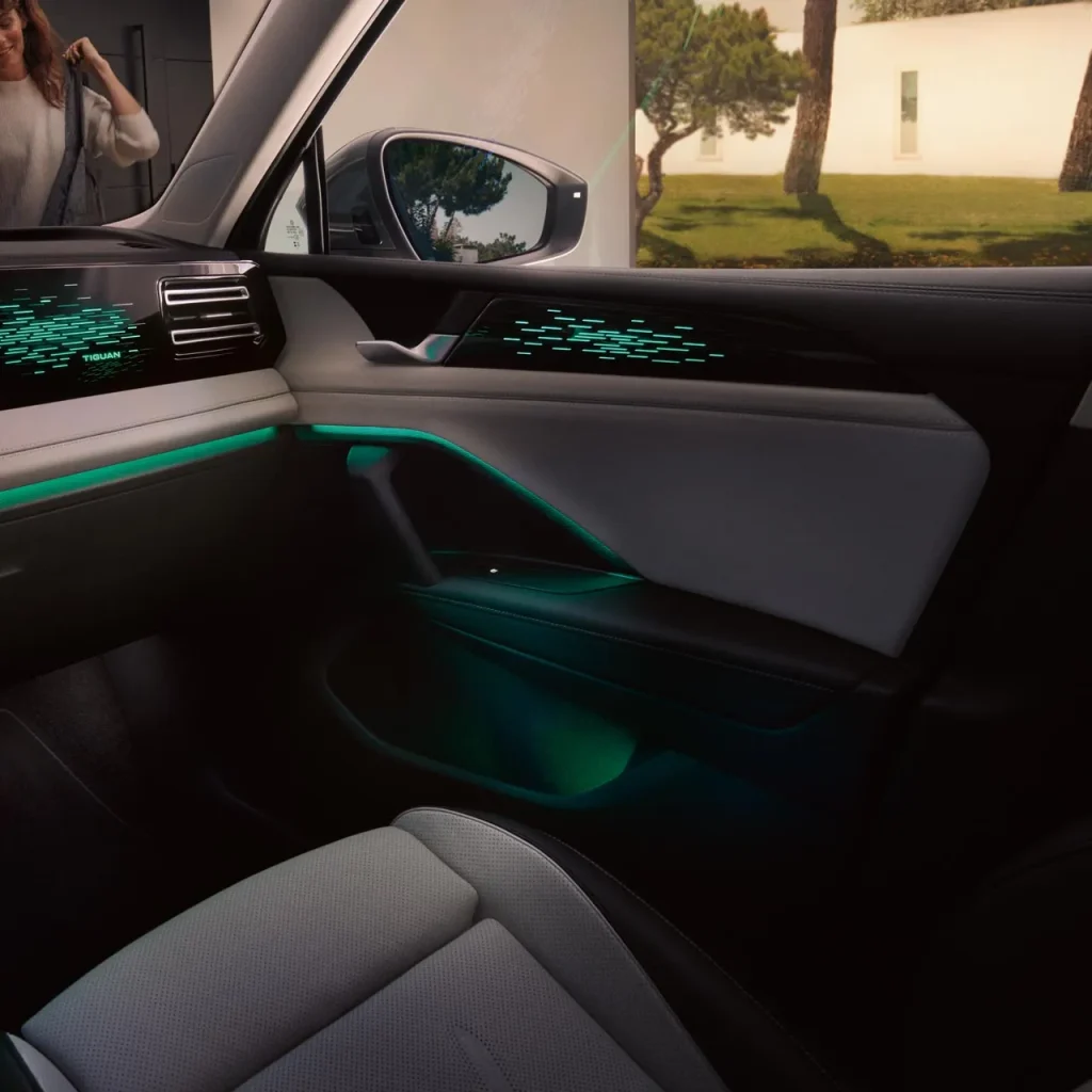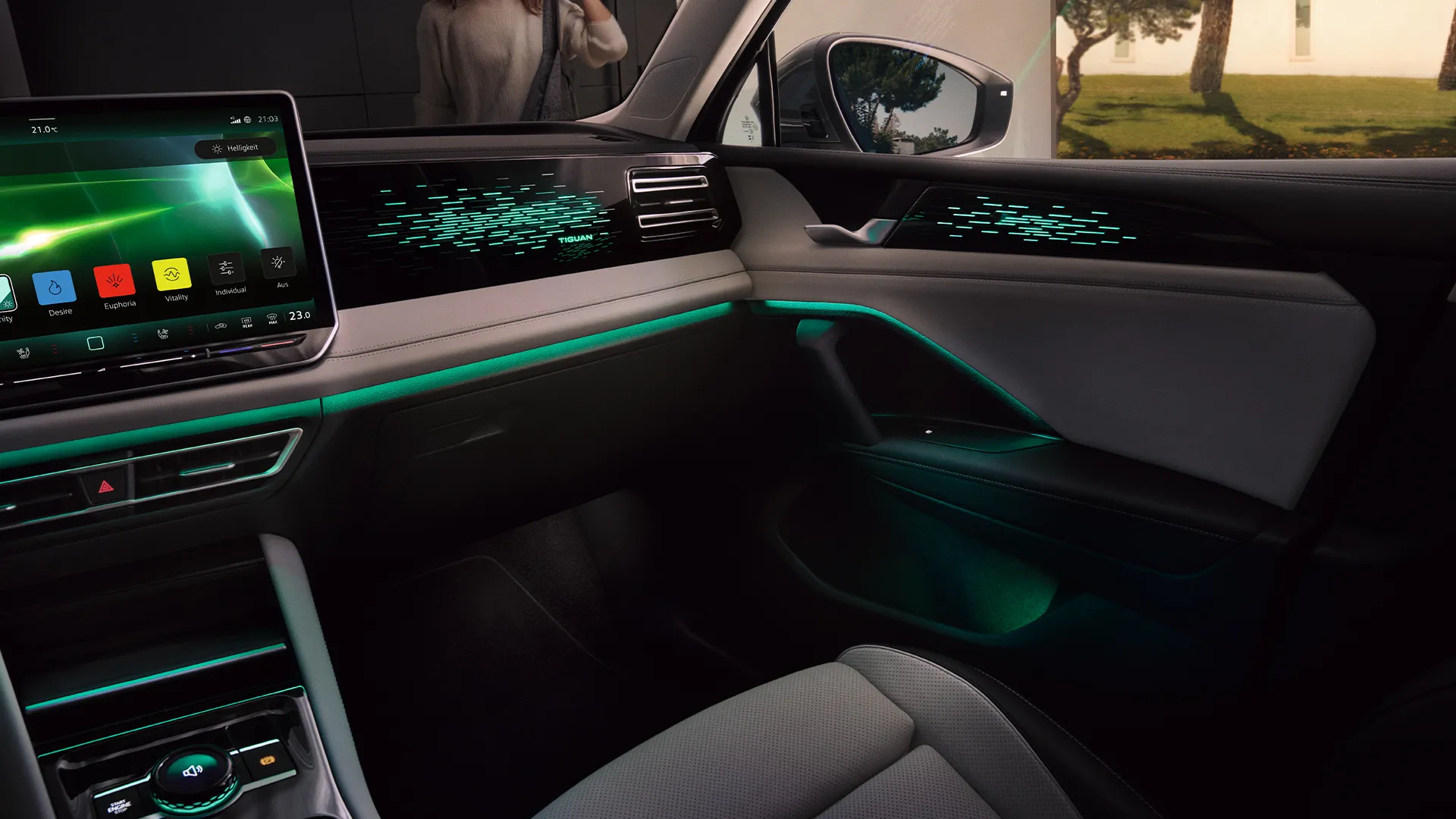 O Novo Tiguan destaca-se pelo seu design exterior elegante e dinâmico. Grandes entradas de ar, uma grelha do radiador elegante e uma assinatura luminosa renovada caracterizam a dianteira. Linhas fluidas e proporções fortes conferem à carroçaria uma silhueta desportiva. Também o habitáculo foi melhorado, recebendo-o com equipamentos e opções inovadoras, como a nova iluminação ambiente, o visor maior e um conceito de operação otimizado, incluindo um assistente de voz digital inteligente.